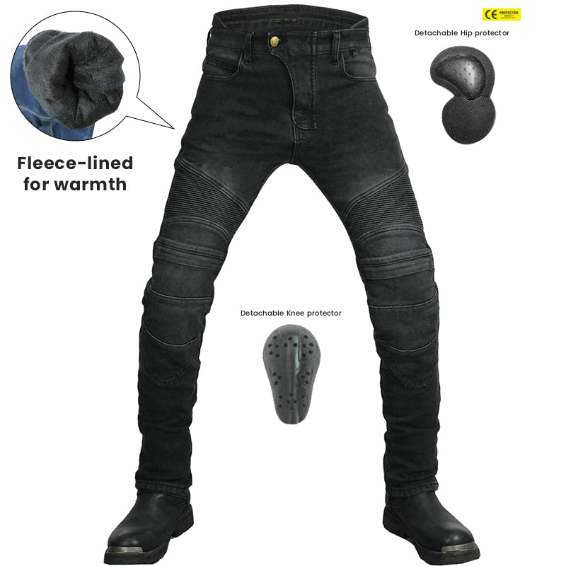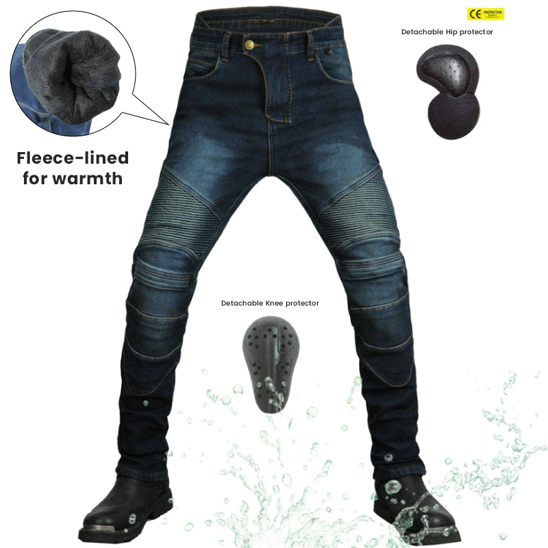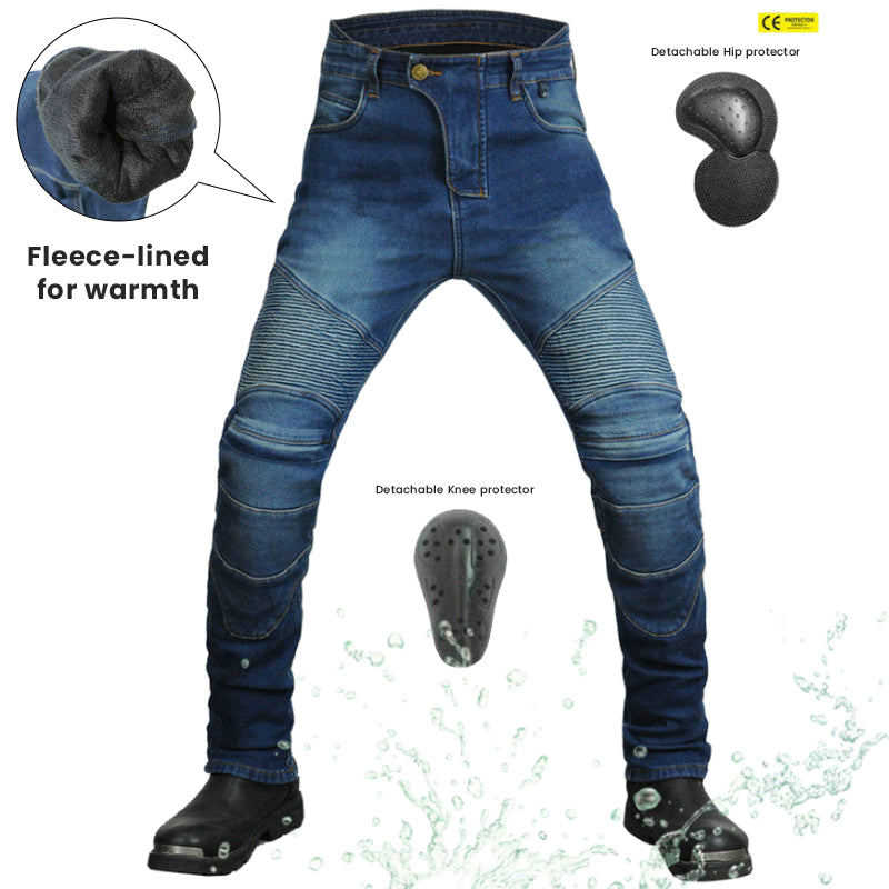 Le jean de moto d'hiver avec protections certifiées CE est prêt pour la moto par temps froid, tout en étant à la pointe des tendances de la mode. Les tissus extensibles en polyester et coton utilisés dans les jeans se mélangent pour créer un mélange parfait d'utilité et de confort.
