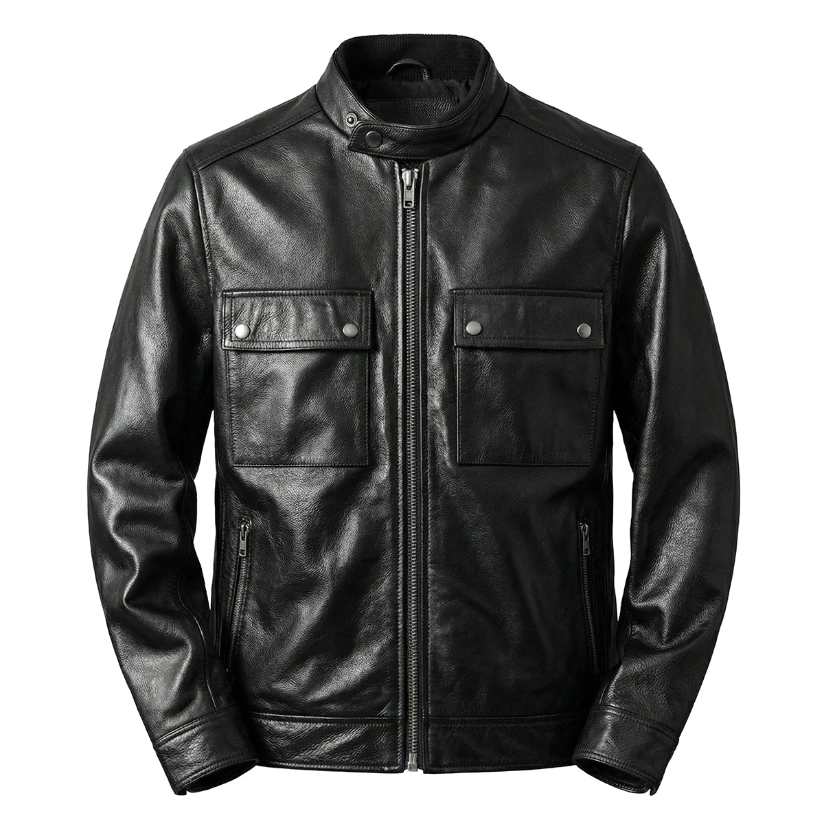 Veste en cuir de moto noire décontractée