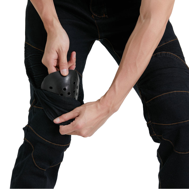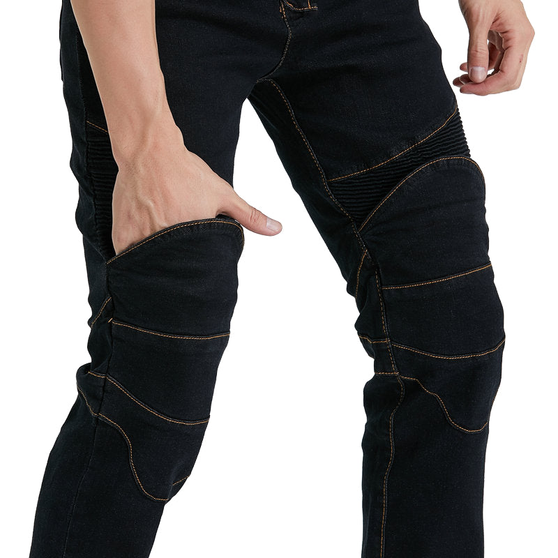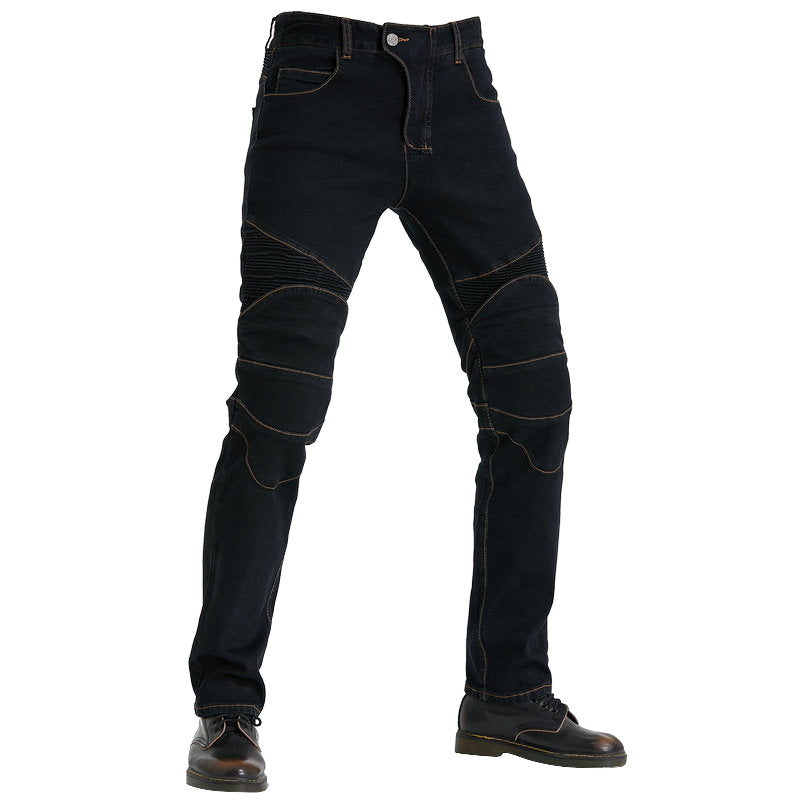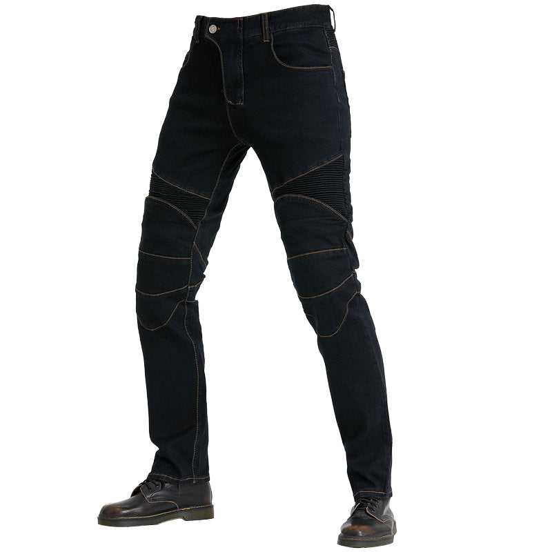 Le jean Motorcycle Riding N97 avec genouillères est une paire de jeans de style traditionnel, tissé avec du denim extensible pour plus de confort lors de la conduite. Les tissus extensibles en polyester et en coton utilisés dans le pantalon se mélangent parfaitement pour créer un mélange parfait d'utilité et de confort.