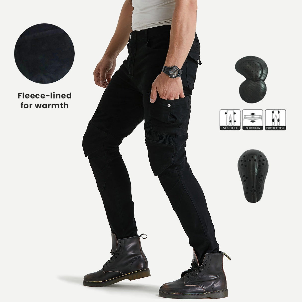 Le jean moto d'hiver Plus Velvet Warm est prêt pour la moto par temps froid , tout en étant à la pointe des tendances de la mode. Les tissus extensibles en polyester et coton utilisés dans les jeans se mélangent pour créer un mélange parfait d'utilité et de confort.