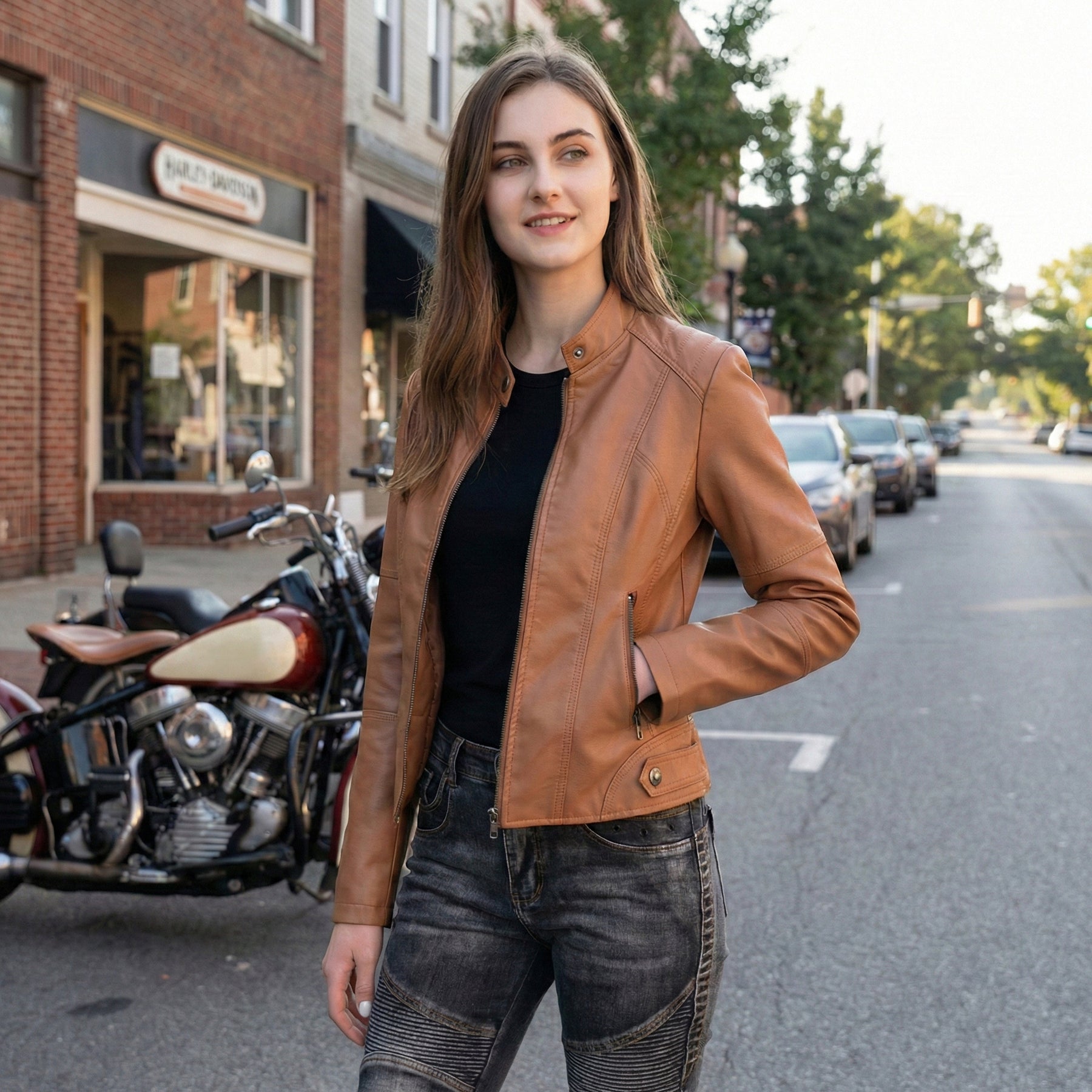 Veste en cuir de motard pour femmes