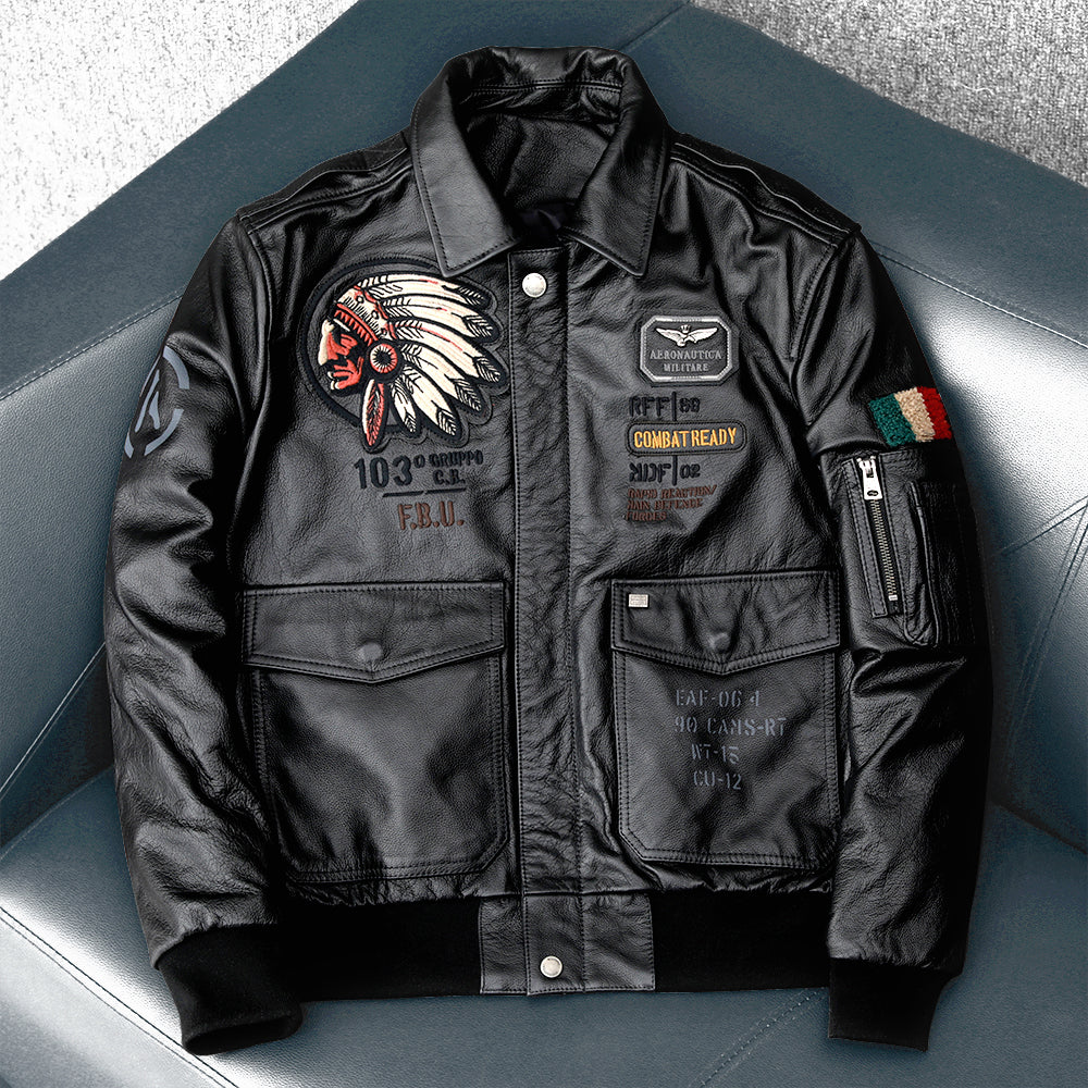 Men bomber flight leather jacket