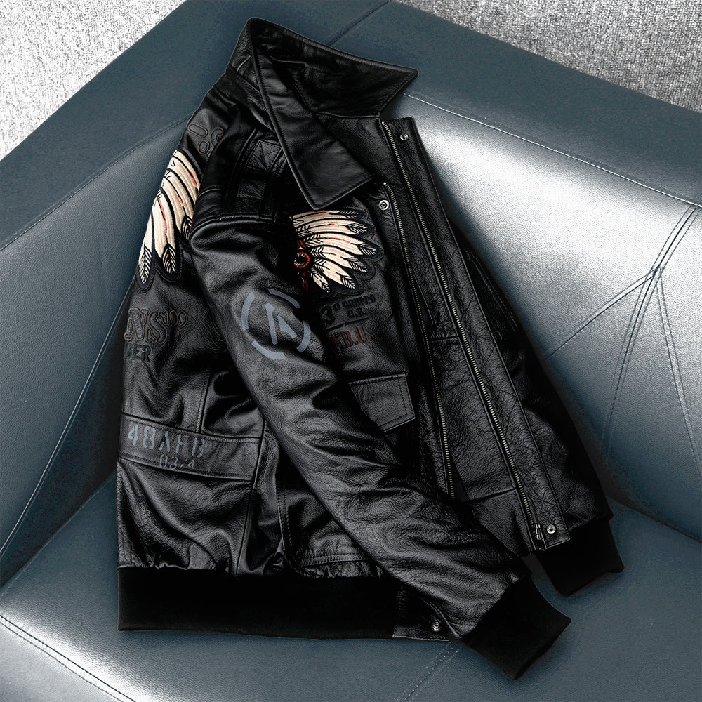 Meet our Men's Embroidered Bomber Flight Leather Jacket: If you love leather jackets, this one will quickly become your absolute favorite. Crafted for riders and style enthusiasts alike, it’s elegant, striking, and exceptionally comfortable.