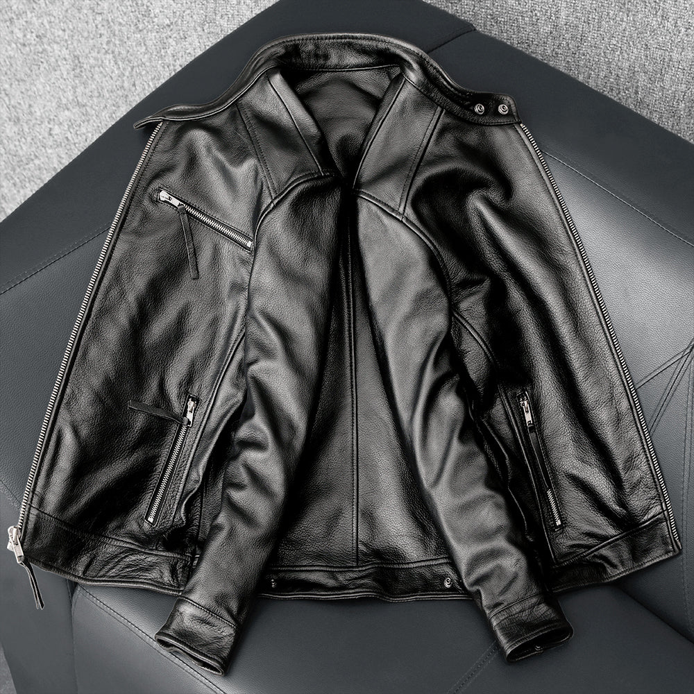 Meet our Cowhide Black Leather Jacket:  If you love leather jackets, you’re especially going to love this motorcycle leather jacket! It’s elegant, stunning, and extremely comfortable.