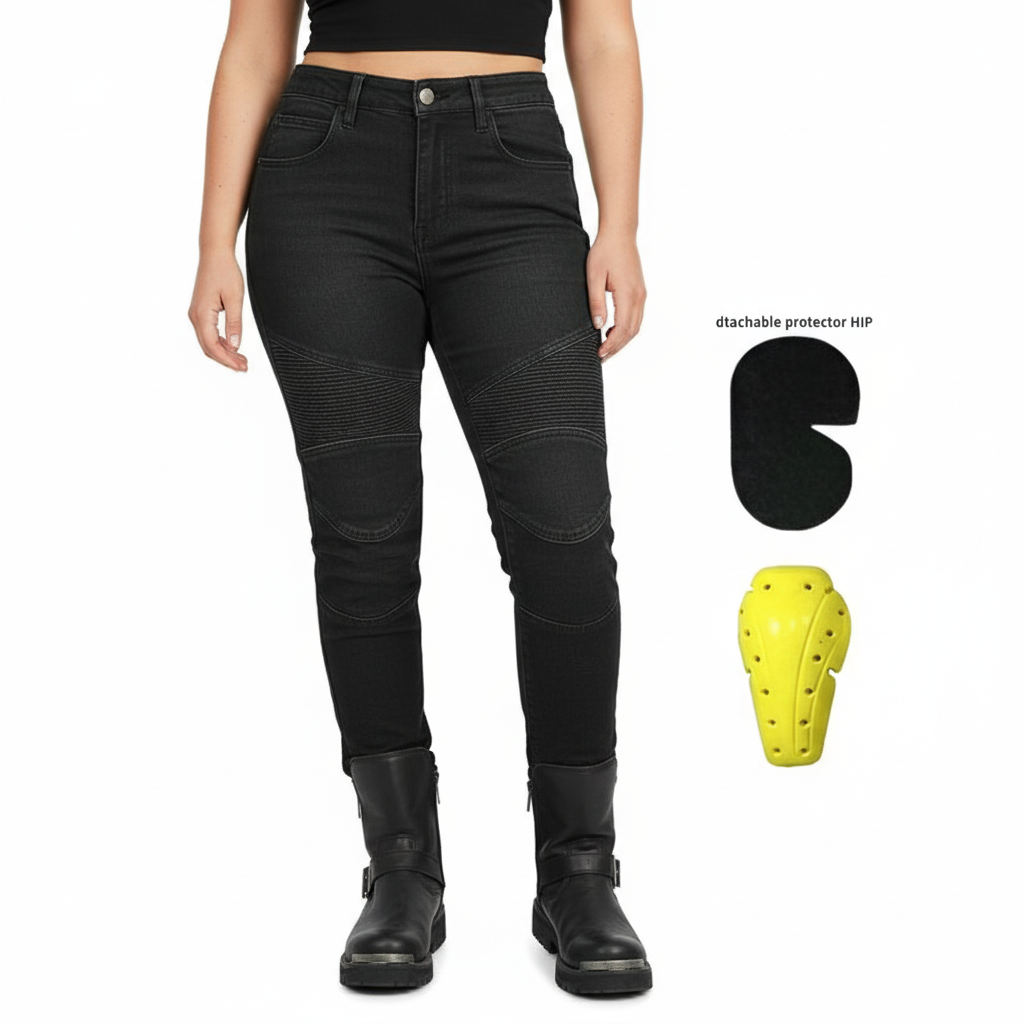 The Fierce 6 Women's Riding Jeans with CE Armor Protector deliver motorcycle-ready performance while staying perfectly in step with modern fashion trends. Crafted from stretchable polyester and cotton, they offer the ideal blend of utility, comfort, and a flattering, stylish fit.