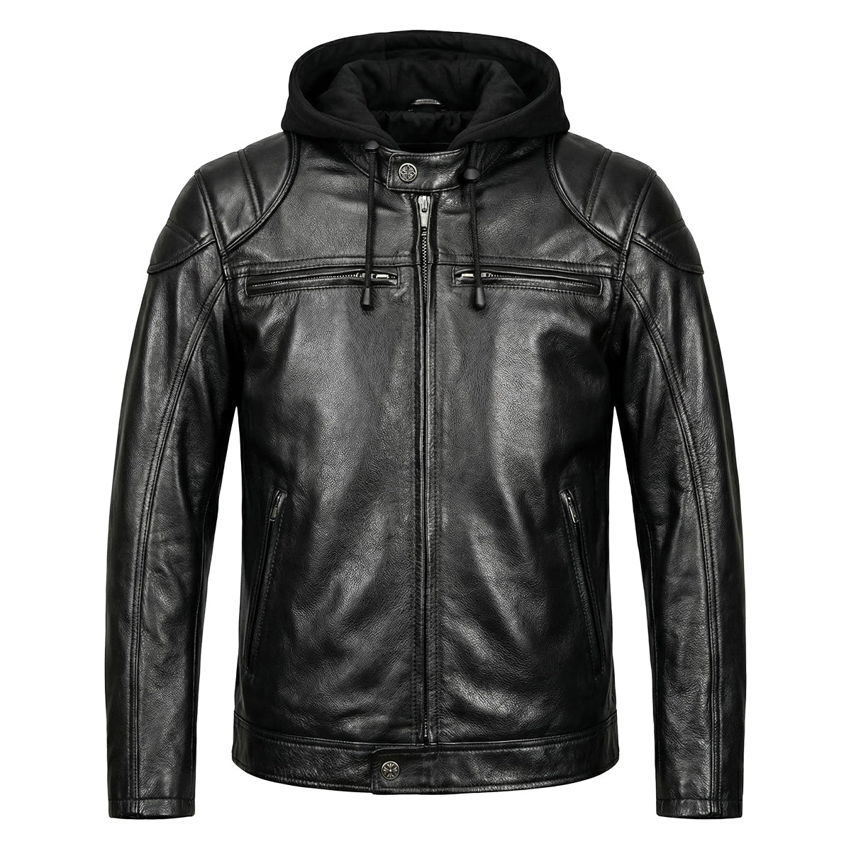 Detachable Hooded Slim Fit Motorcycle Leather Jacket