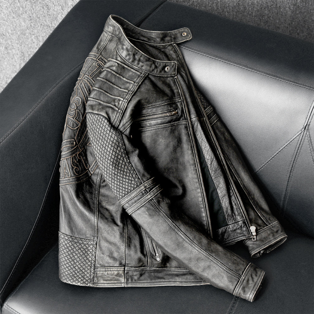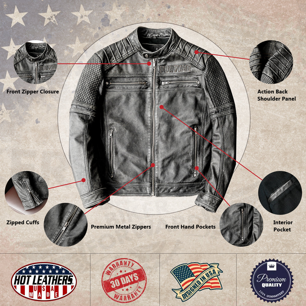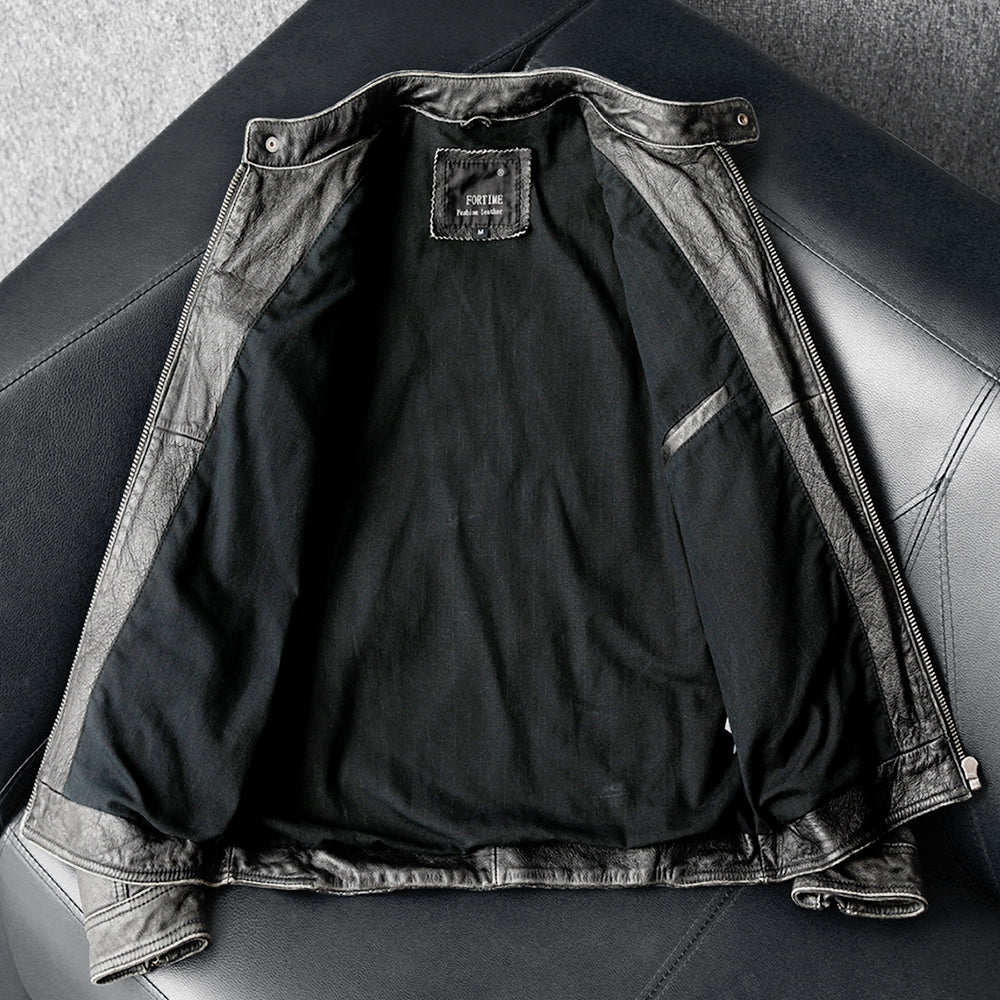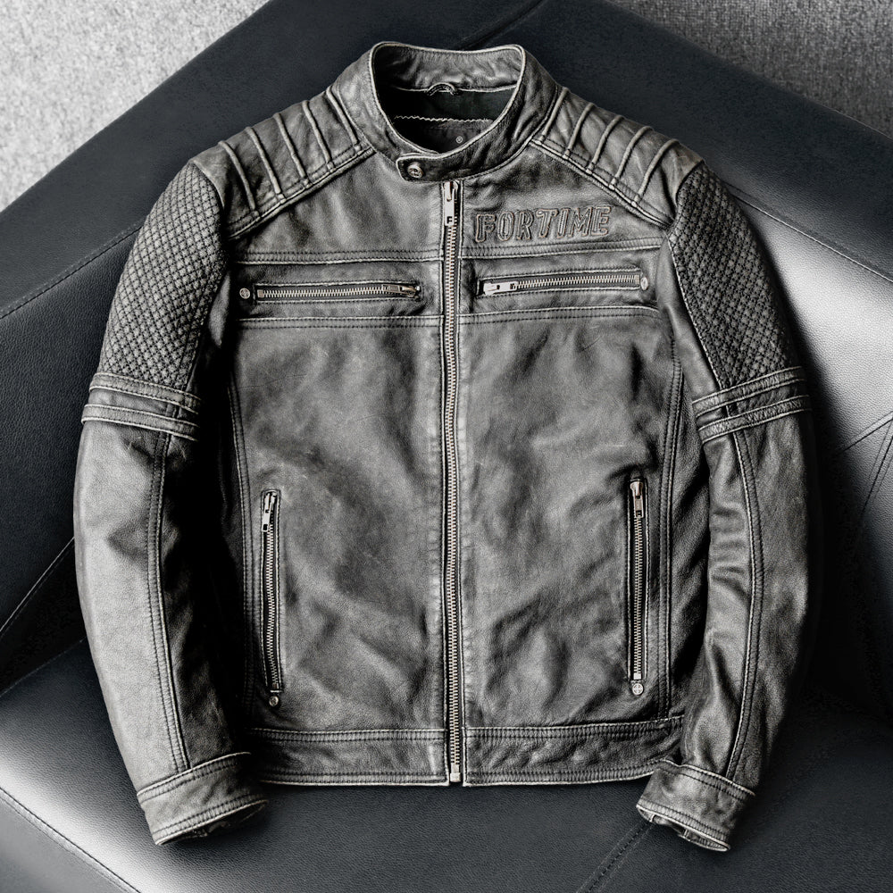 Gray Motorcycle Genuine Leather Jacket